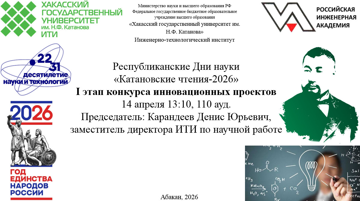 Республиканские Дни Науки «Катановские чтения - 2026» в ИТИ. 14 апреля в ИТИ состоится проведение I этапа конкурса инновационных проектов
