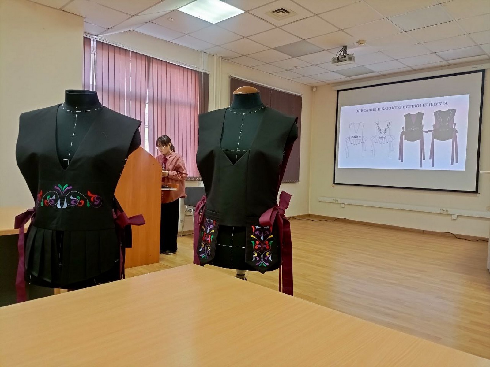 Коновалова Д.К., Опарина Т.И., 3 курс, группа Т-22, Горшунова А.С. 4 курс, группа Т-21 с докладом «Разработка детских жилетов в этническом стиле из авторской коллекции «Палалар»